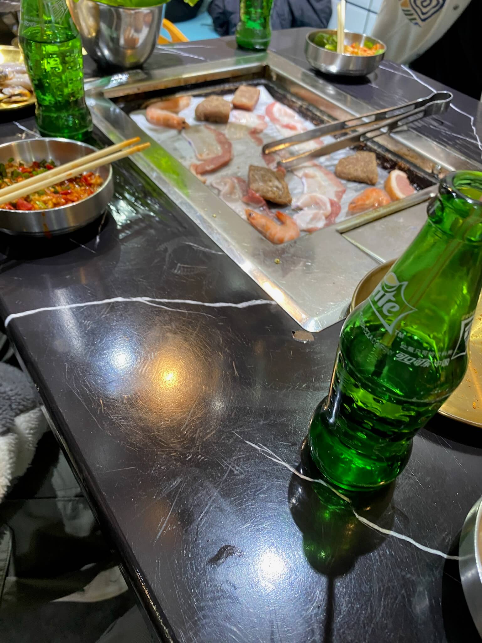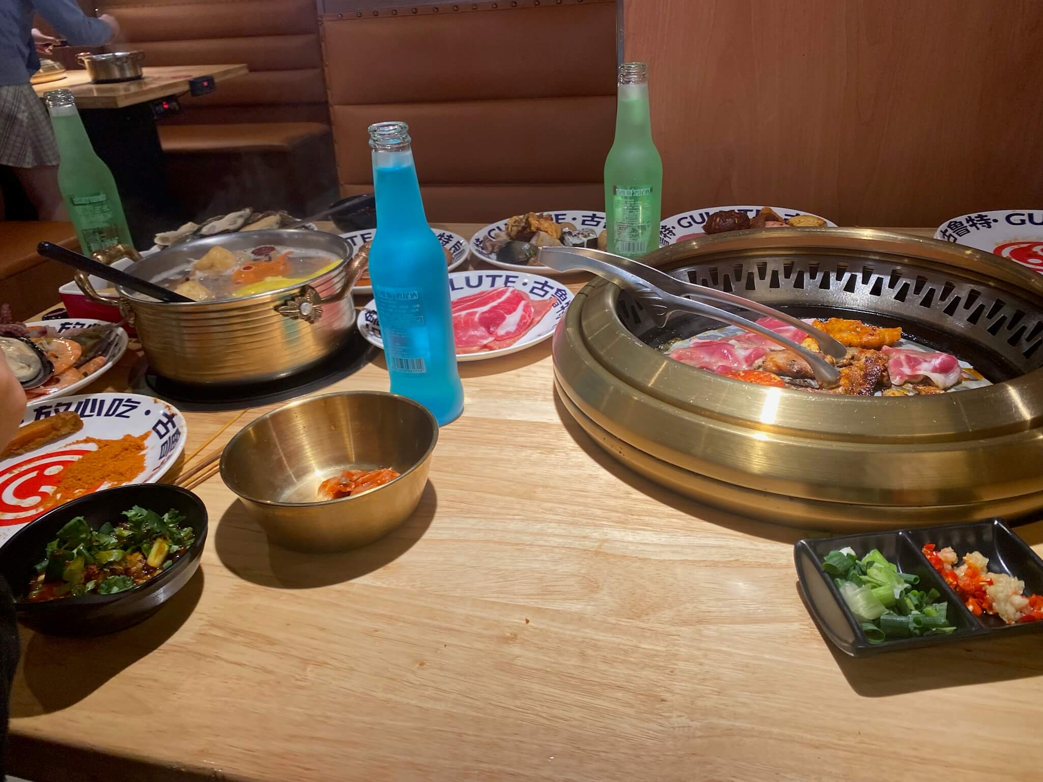 宿舍又出去聚餐了,依旧是古鲁特,依旧是烤肉自助。大家围在一起烤肉、聊天,说说笑笑的,感觉所有的疲惫都被抛到了脑后。