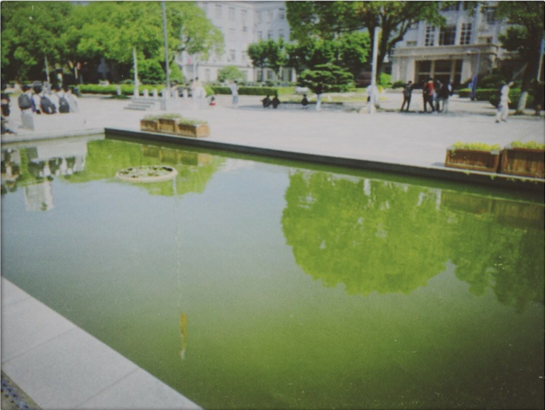 今天路过学校的池塘,随手拍了一张。水面平静如镜,倒映着天空和周围的树木,偶尔有微风吹过,泛起阵阵涟漪。